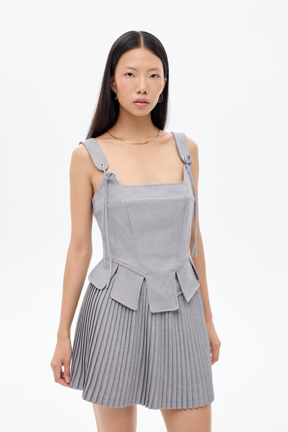 Quzu Askı Detaylı Corse Bluz Gri