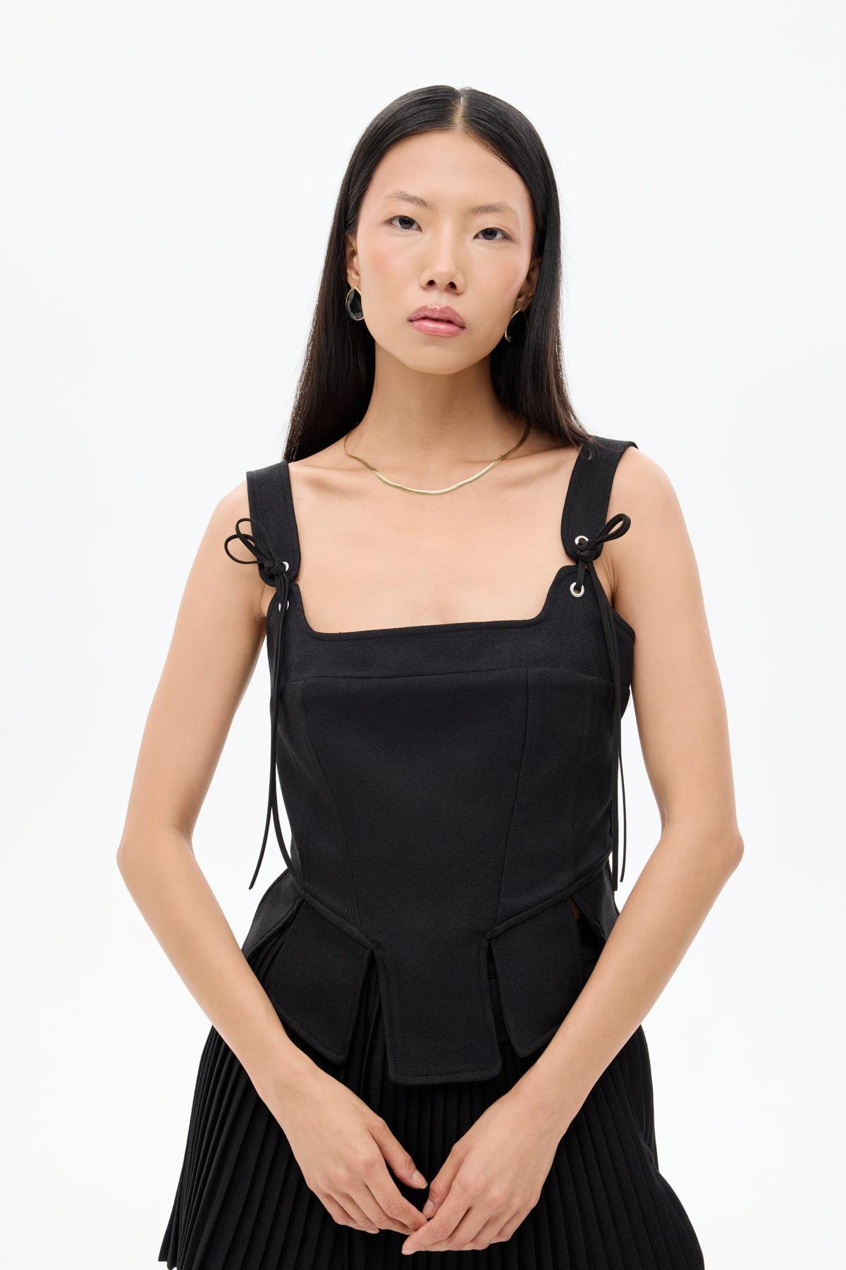 Quzu Askı Detaylı Corse Bluz Siyah (26KBLZ01097-001)