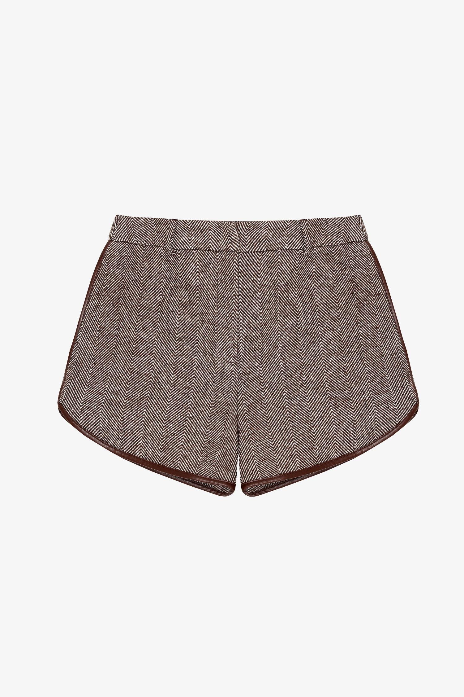 Quzu Balıksırtı Kaşe Matchli Şort Kahve