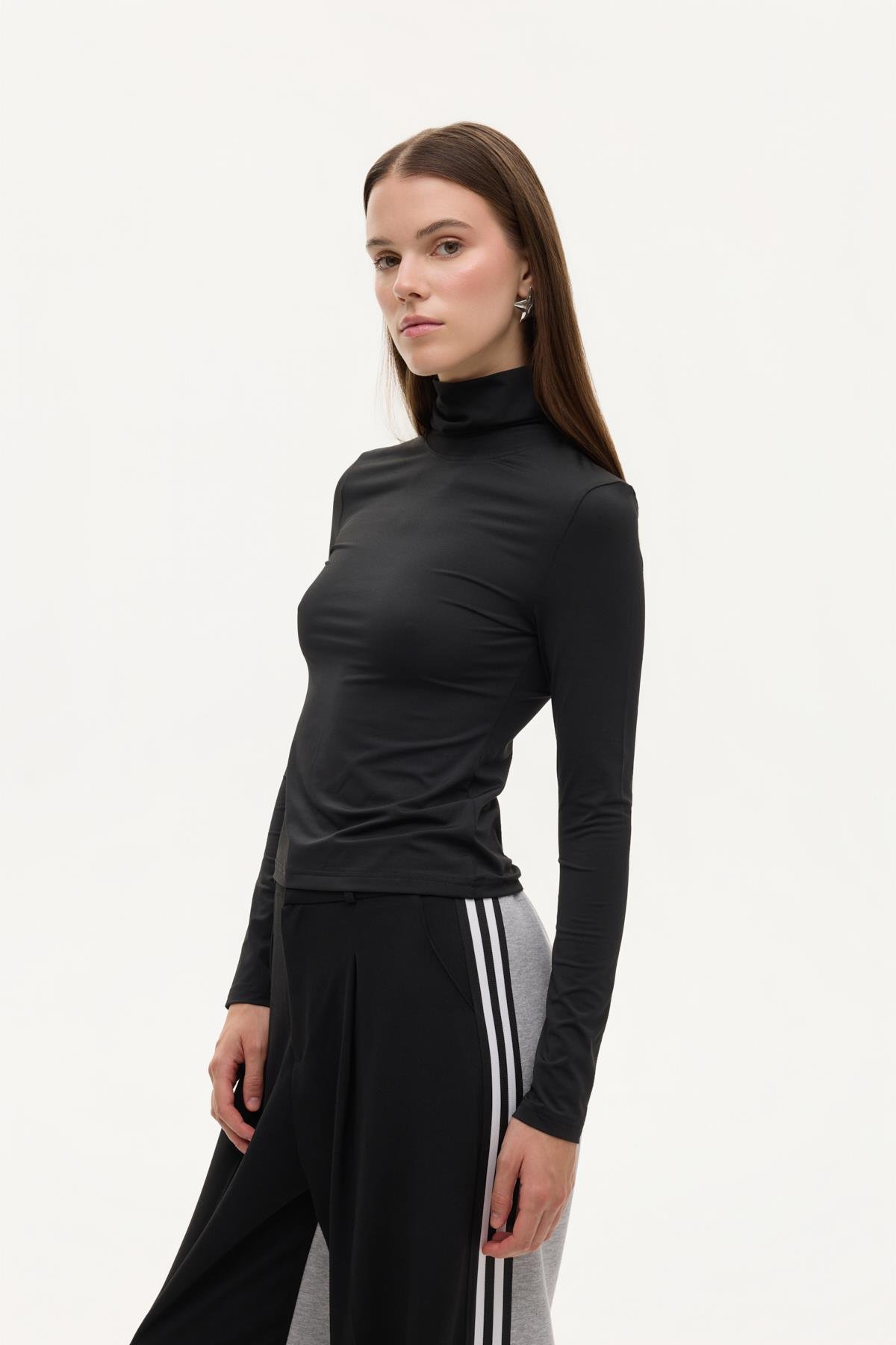 Quzu Turtleneck Long Sleeve Blouse Black (26KBLZ00976-001)