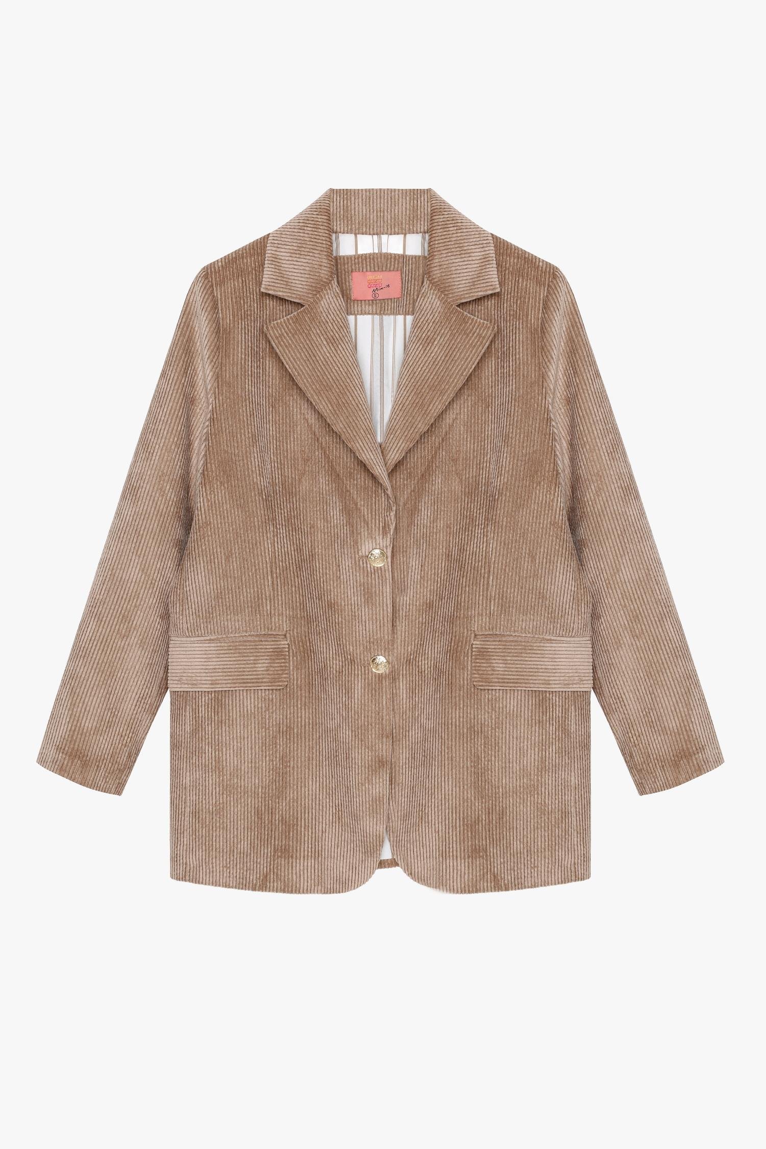 Quzu Broş Detaylı Kadife Ceket Camel (26KCKT01248-034)