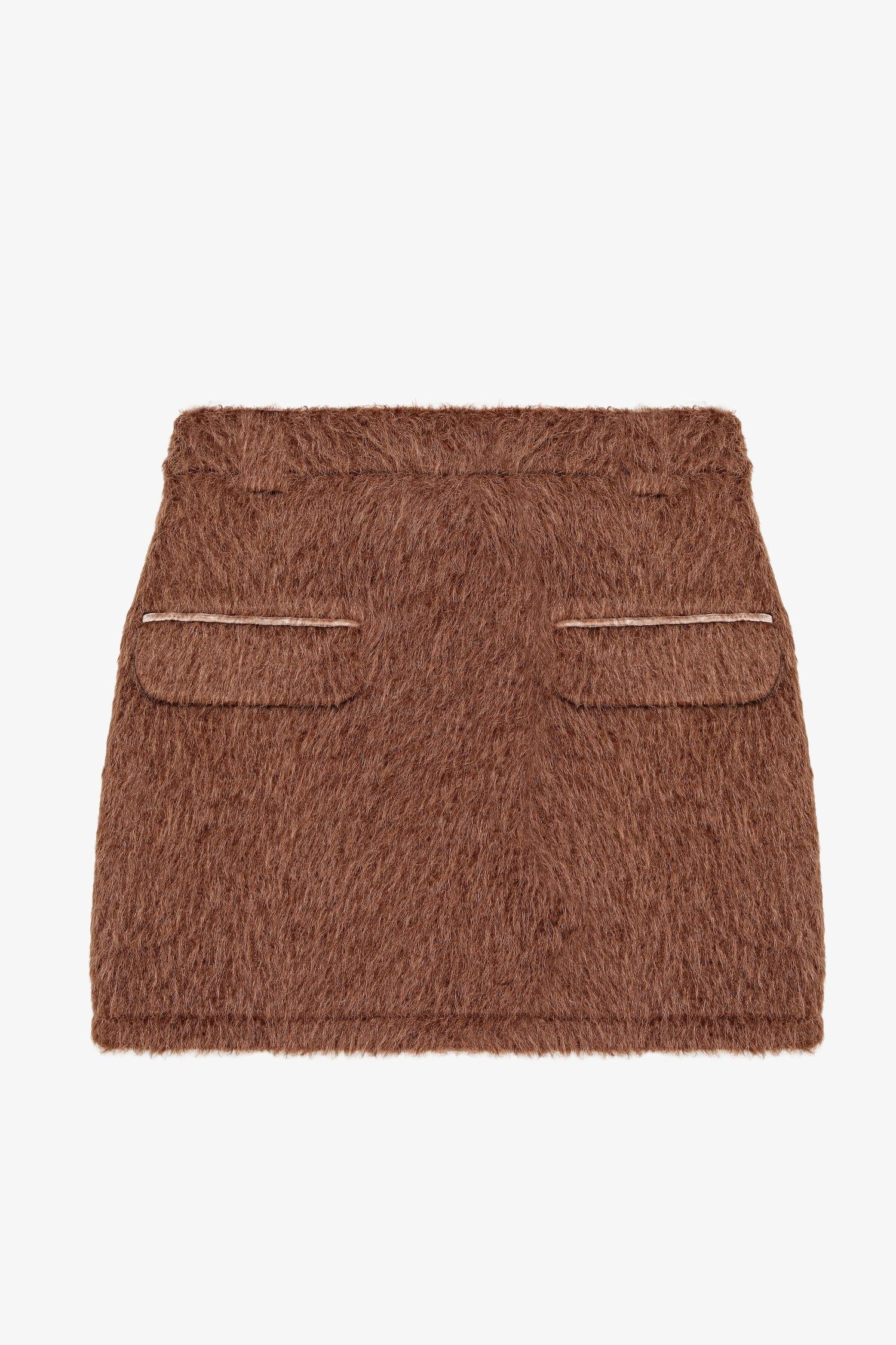 Quzu Cep Detaylı Mini Etek Kahve
