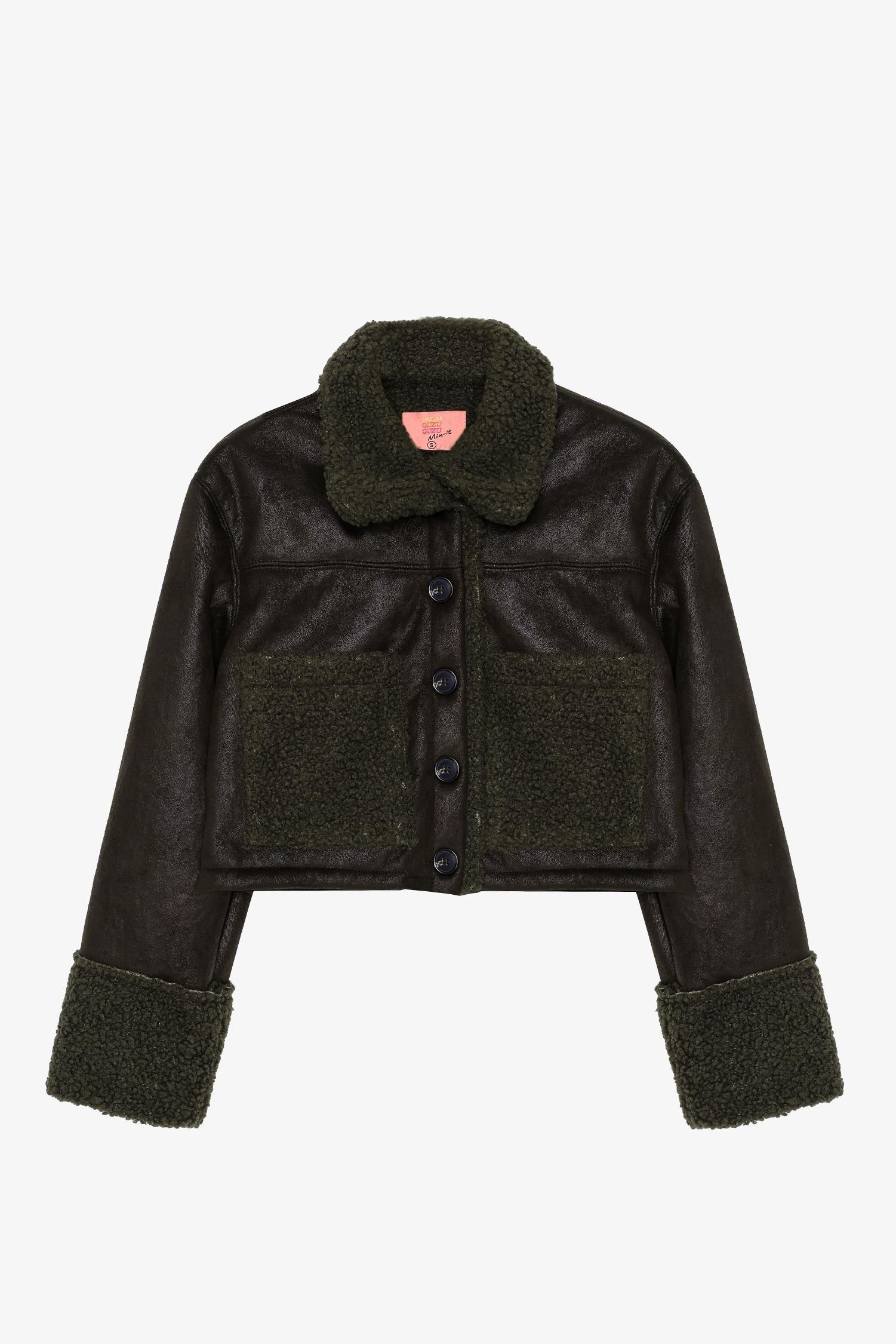 Quzu Crop Kıvırcık Mont Haki (26KMNT01228-016)