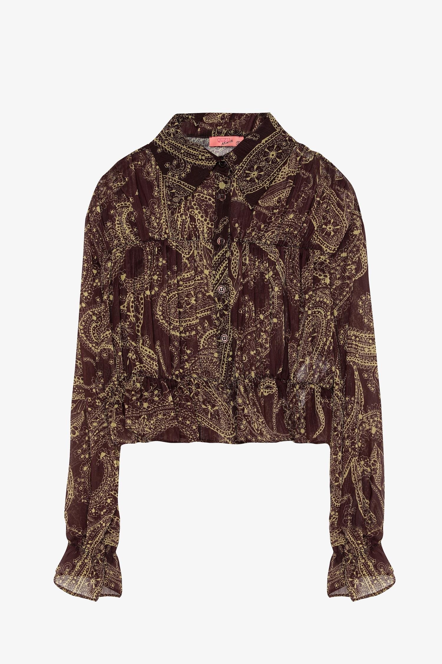 Quzu Desenli Büzgülü Gömlek Kahve (26KGML01214-035)