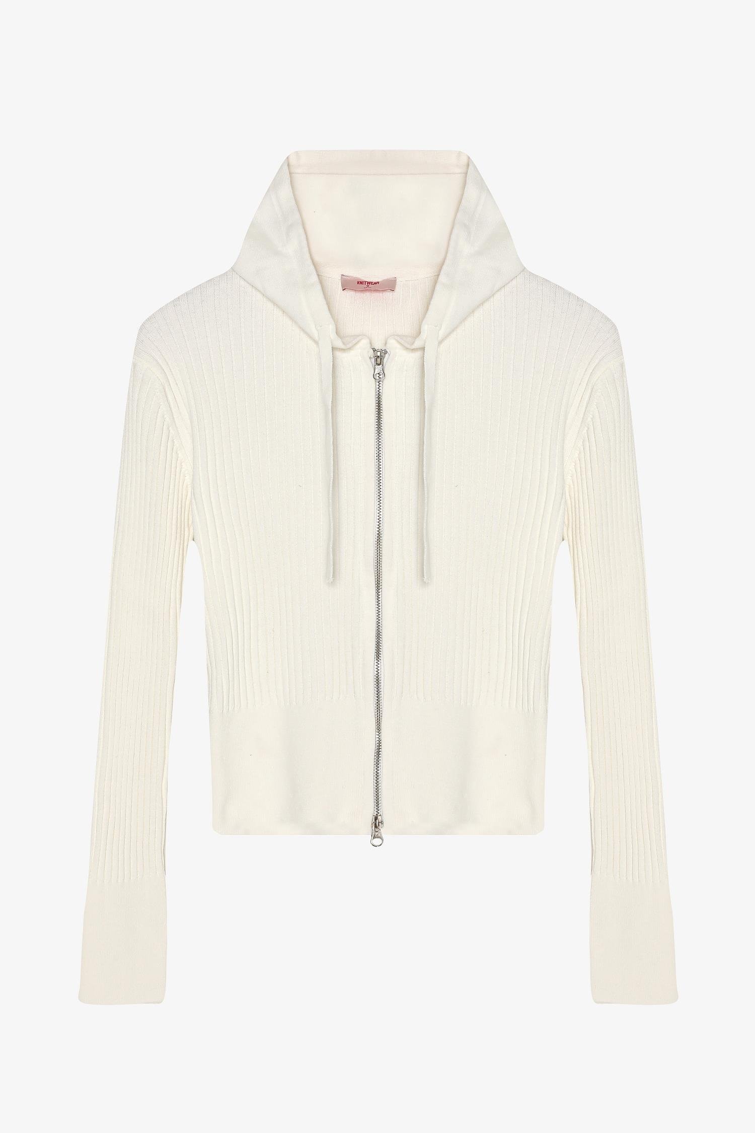 Quzu Fermuar ve Kapüşon Detaylı Triko Ekru (26KTRK01177-002)