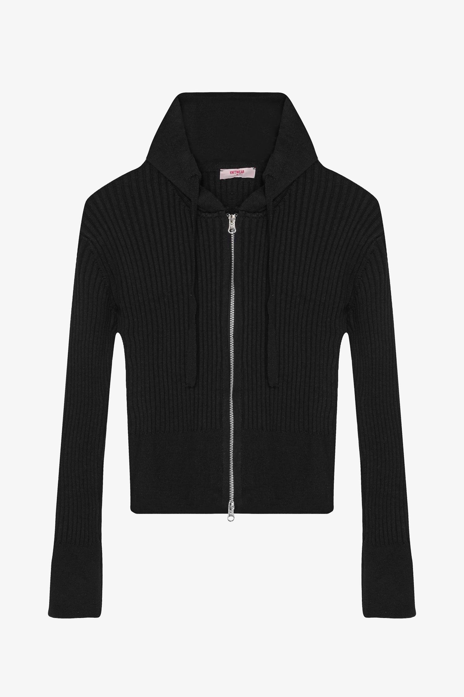 Quzu Fermuar ve Kapüşon Detaylı Triko Siyah (26KTRK01177-001)