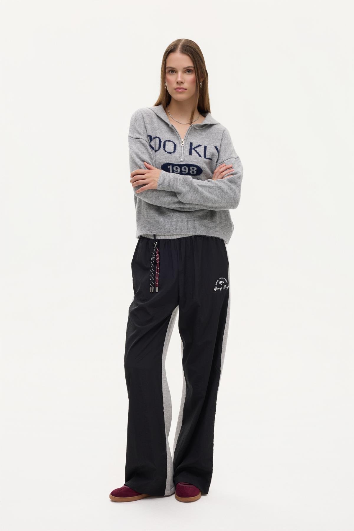 Quzu Wide Collar Zip Knit Grey (26KTRK00951-015)