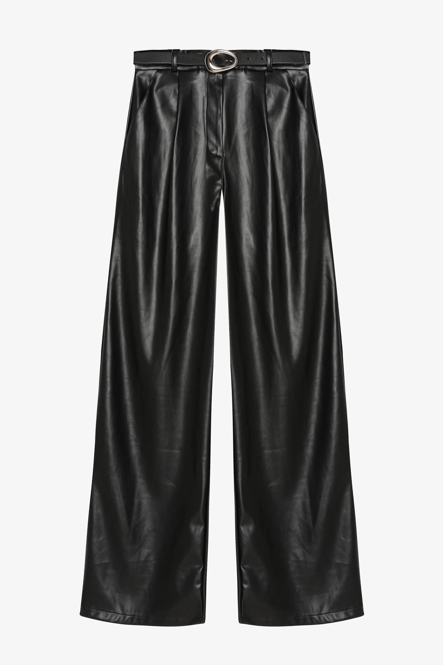 Quzu Kemer Detaylı Deri Pantolon Siyah