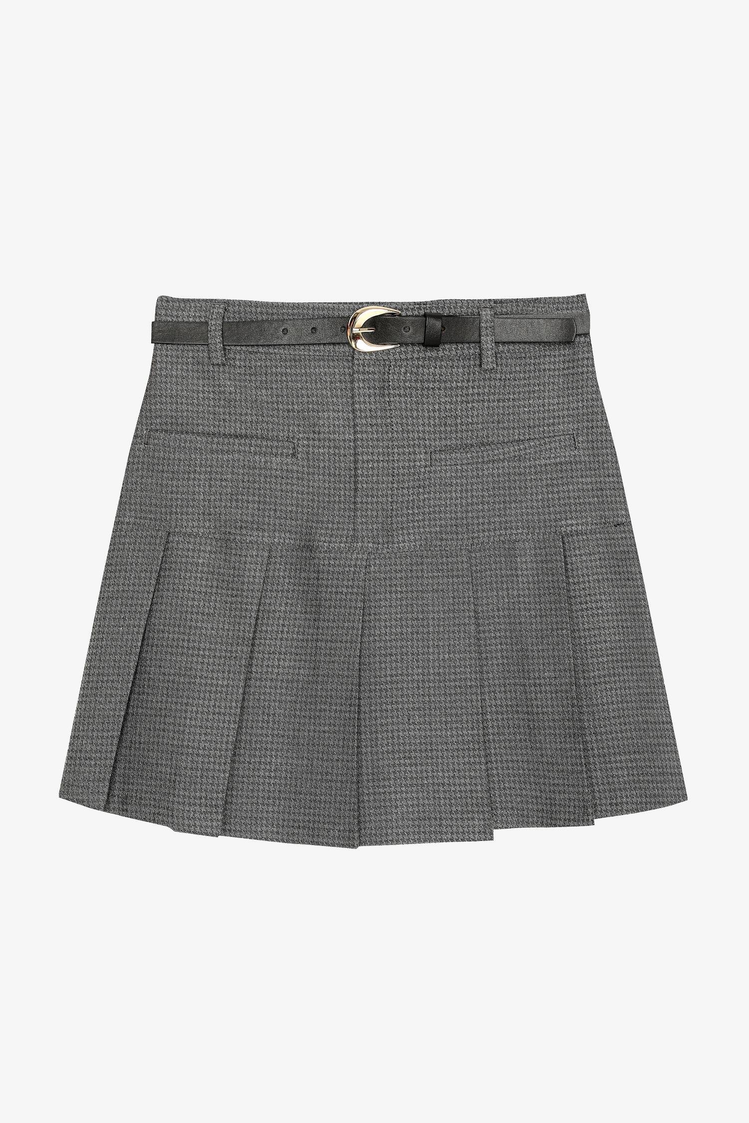 Quzu Kemer Detaylı Pileli Etek Gri (26KETK01117-015)