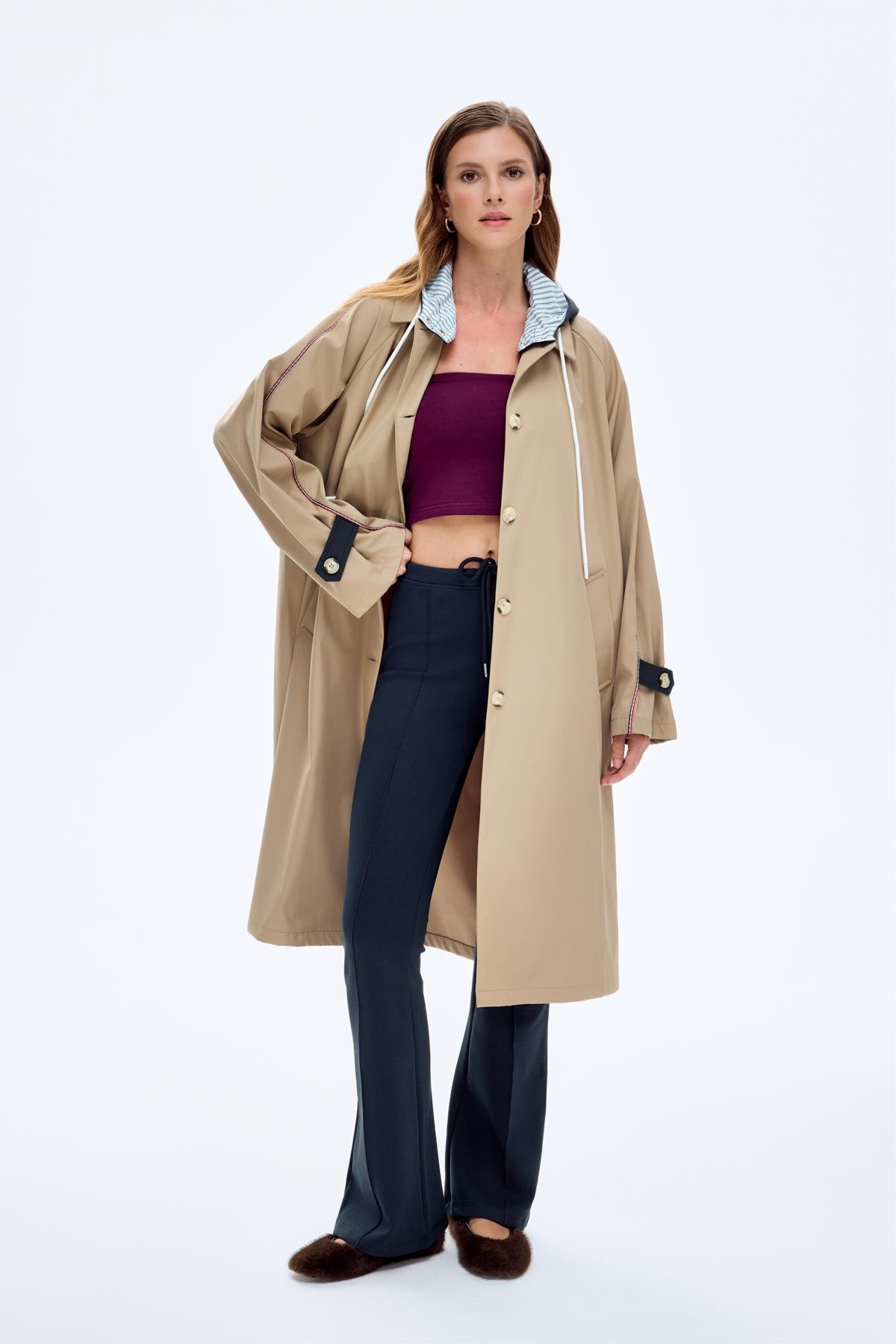 Quzu Contrast Detail Trench Coat Camel (26KTRC00835-034)