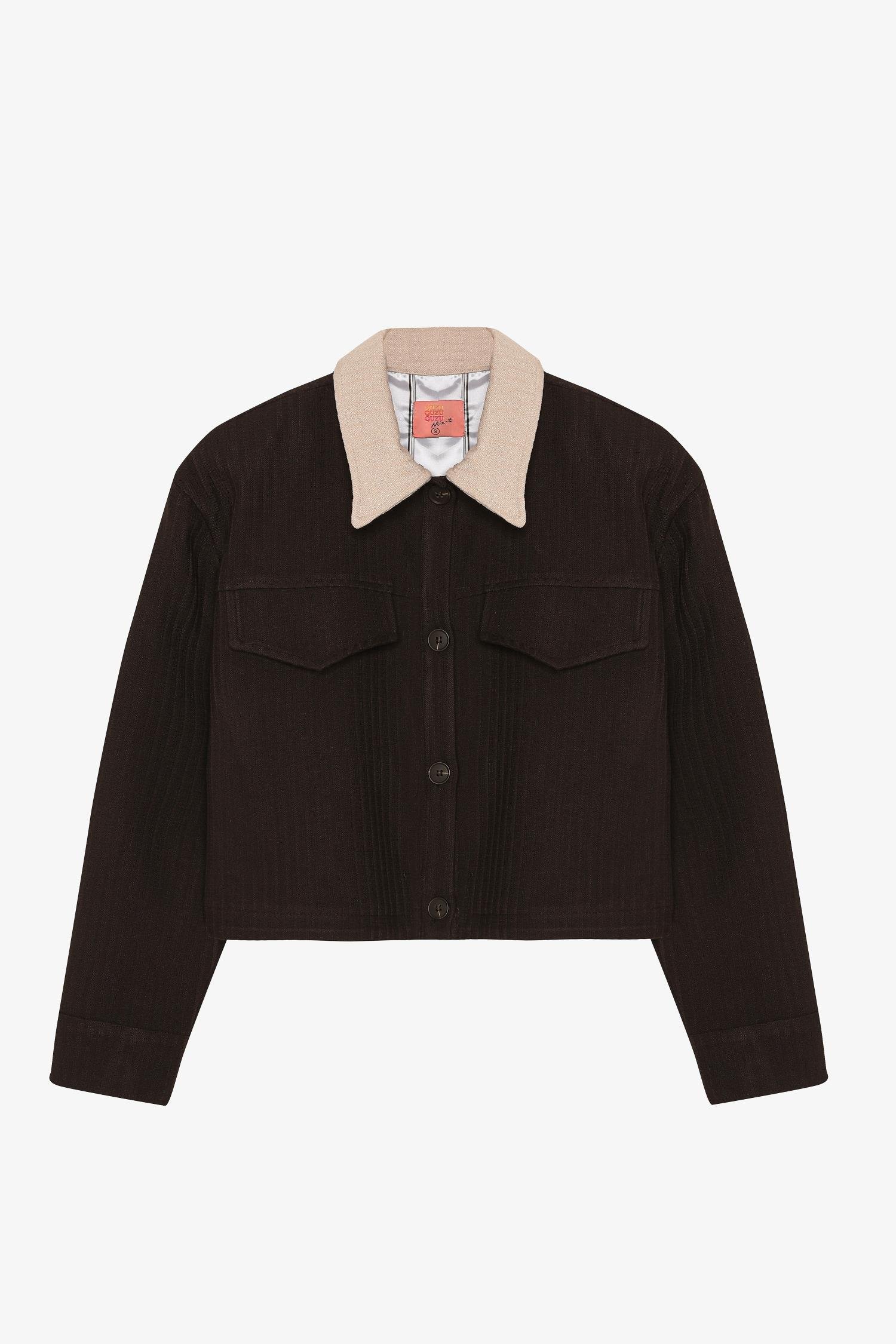Quzu Kumaş Matchlı Crop Ceket Kahve