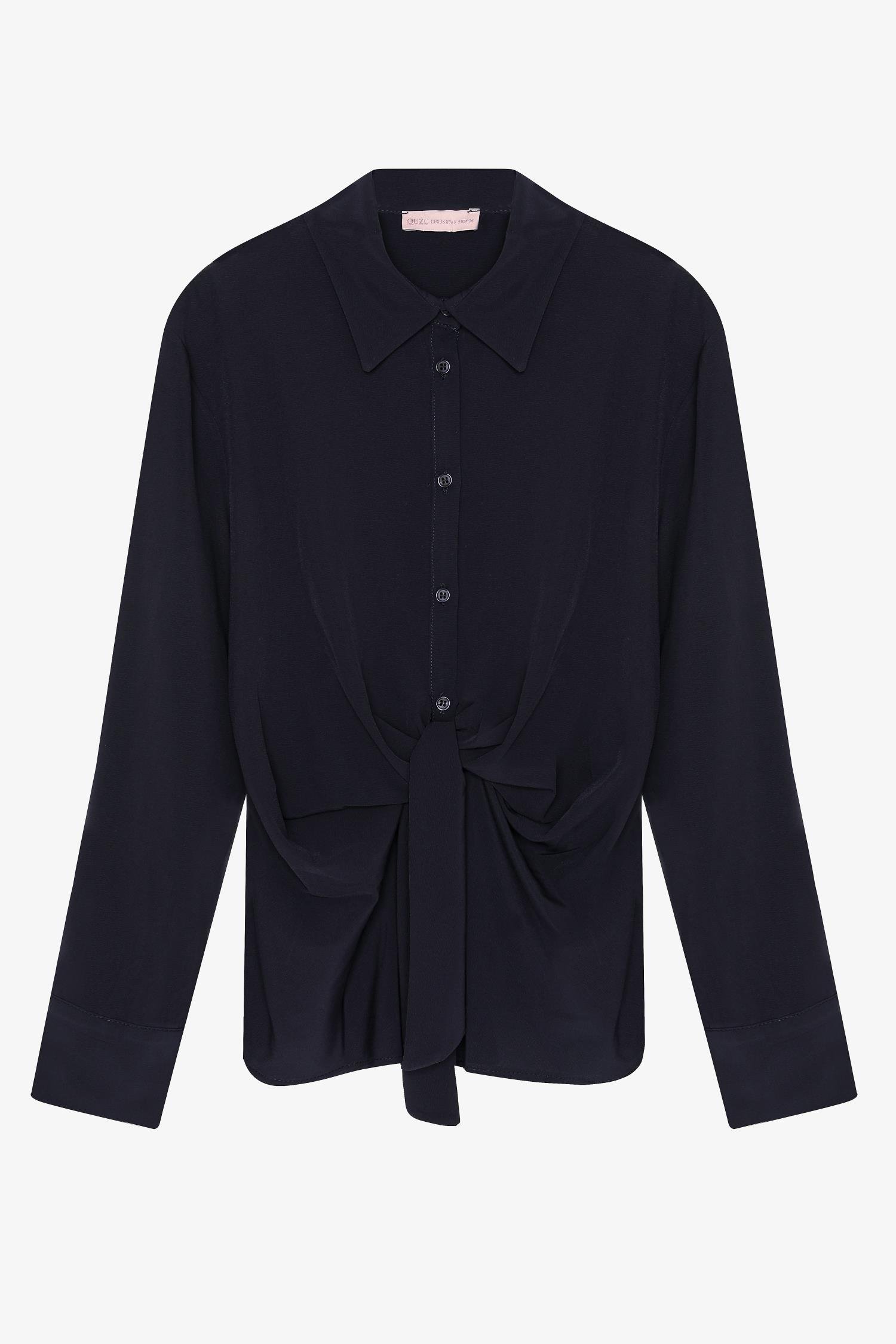 Quzu Önü Bağlama Detaylı Gömlek Lacivert