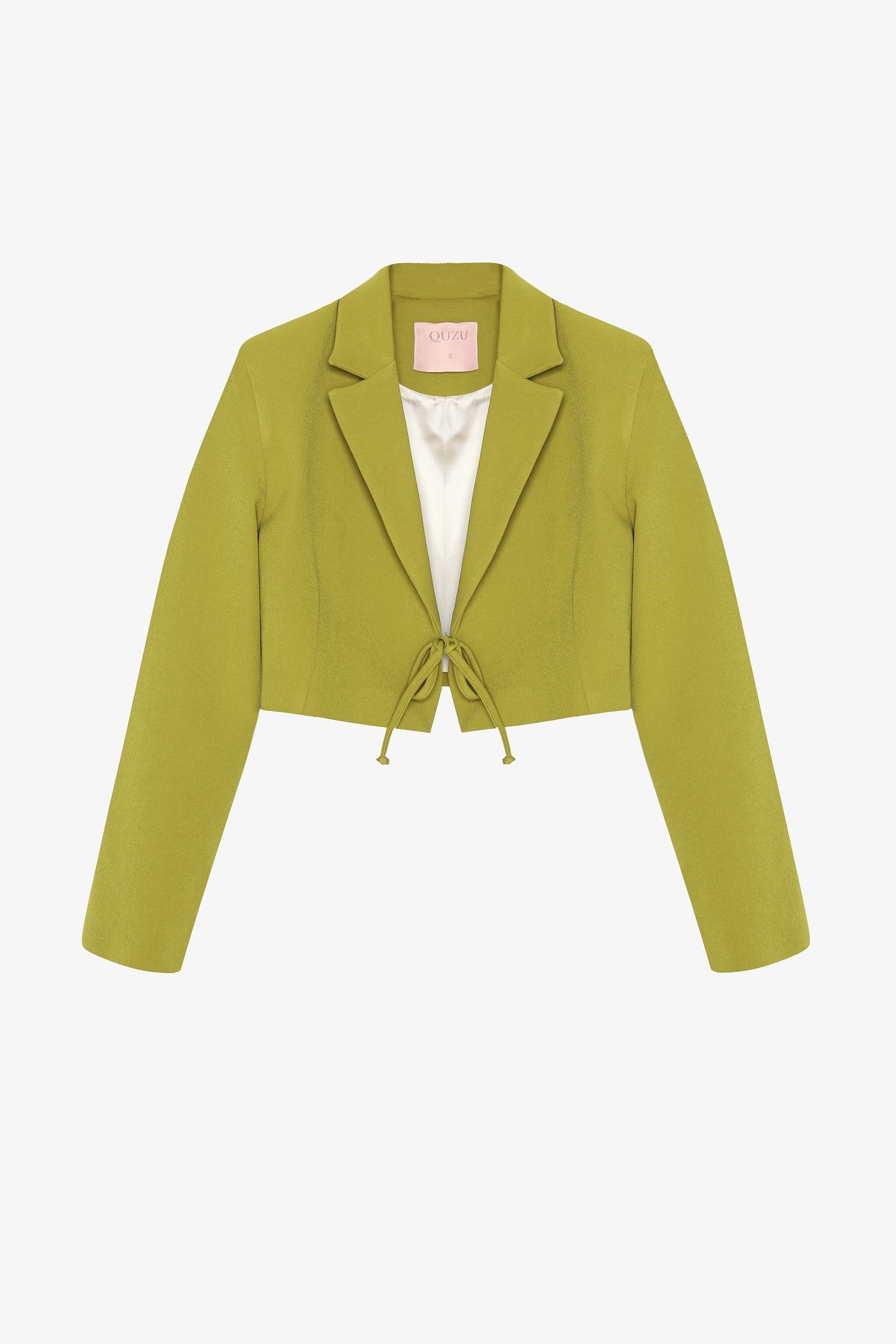 Quzu Önü Bağlamalı Crop Ceket Olive