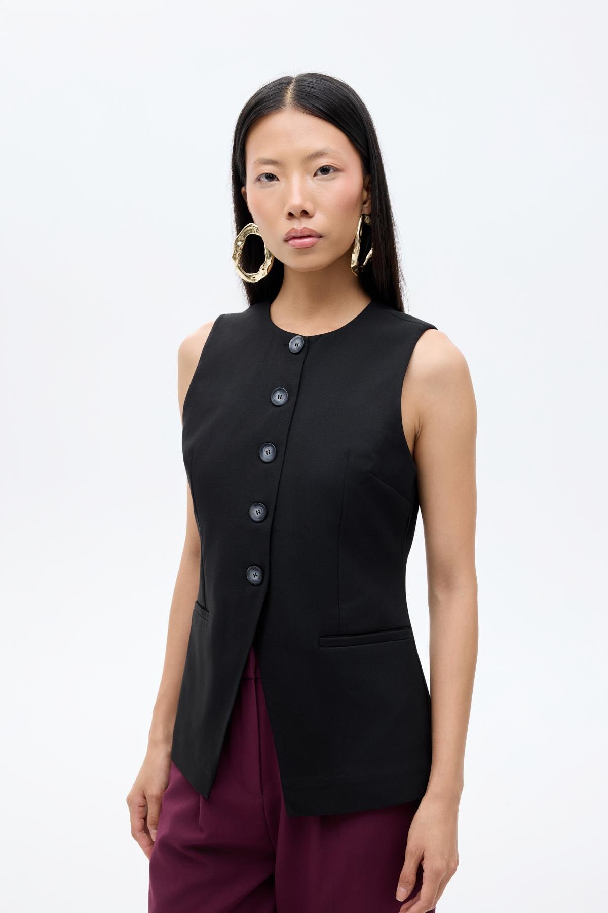 Quzu Buttoned Front Crew Neck Vest Black (26KYLK00933-001)