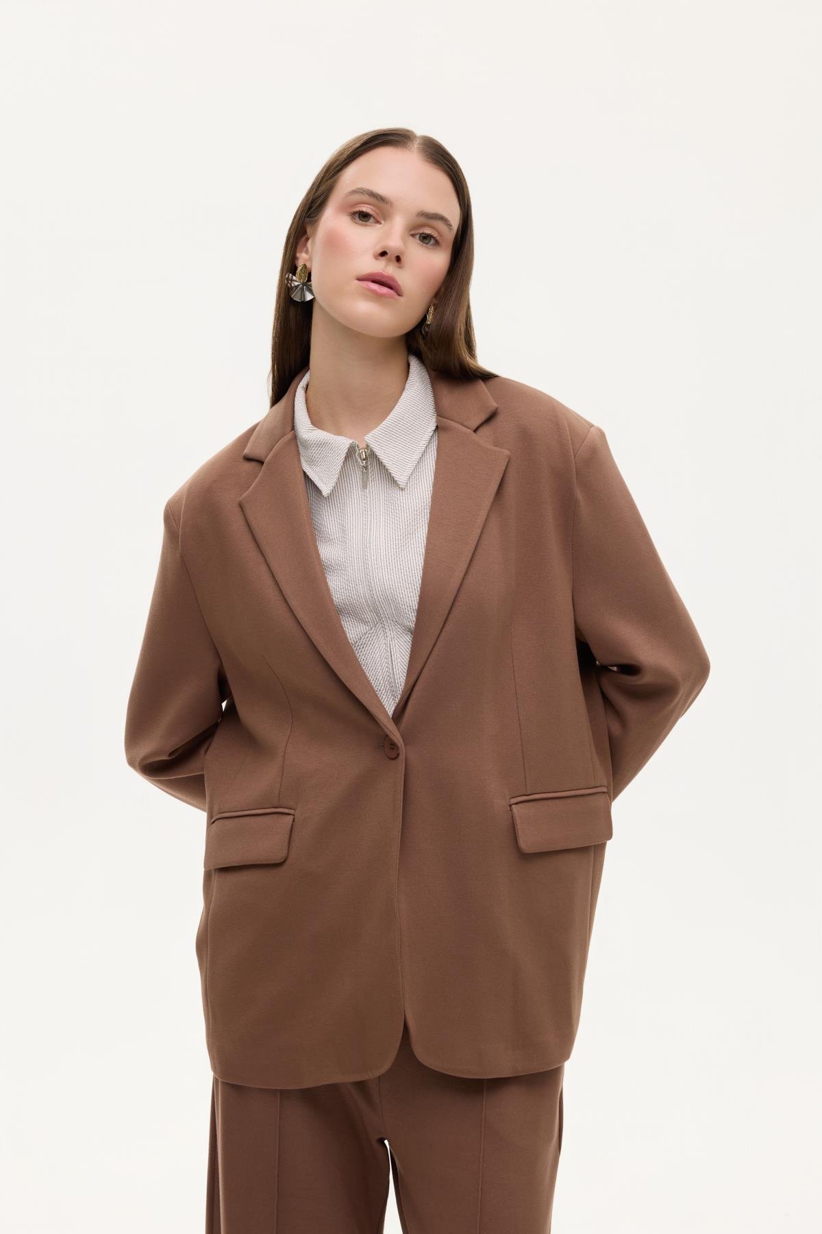 Quzu Önü Tek Düğmeli Ceket Kahve