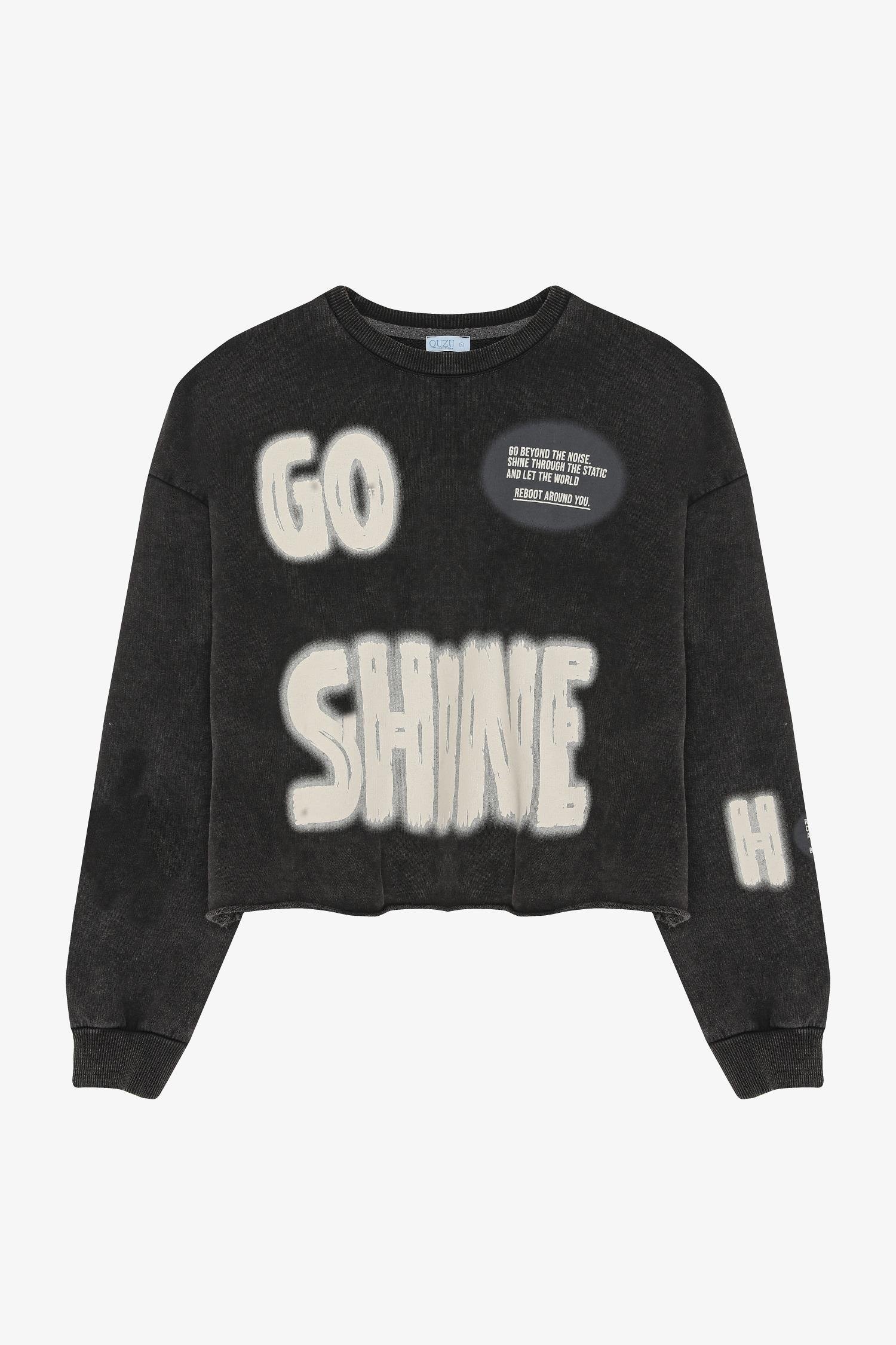Quzu Önü ve Kolu Baskılı Sweatshirt Antrasit