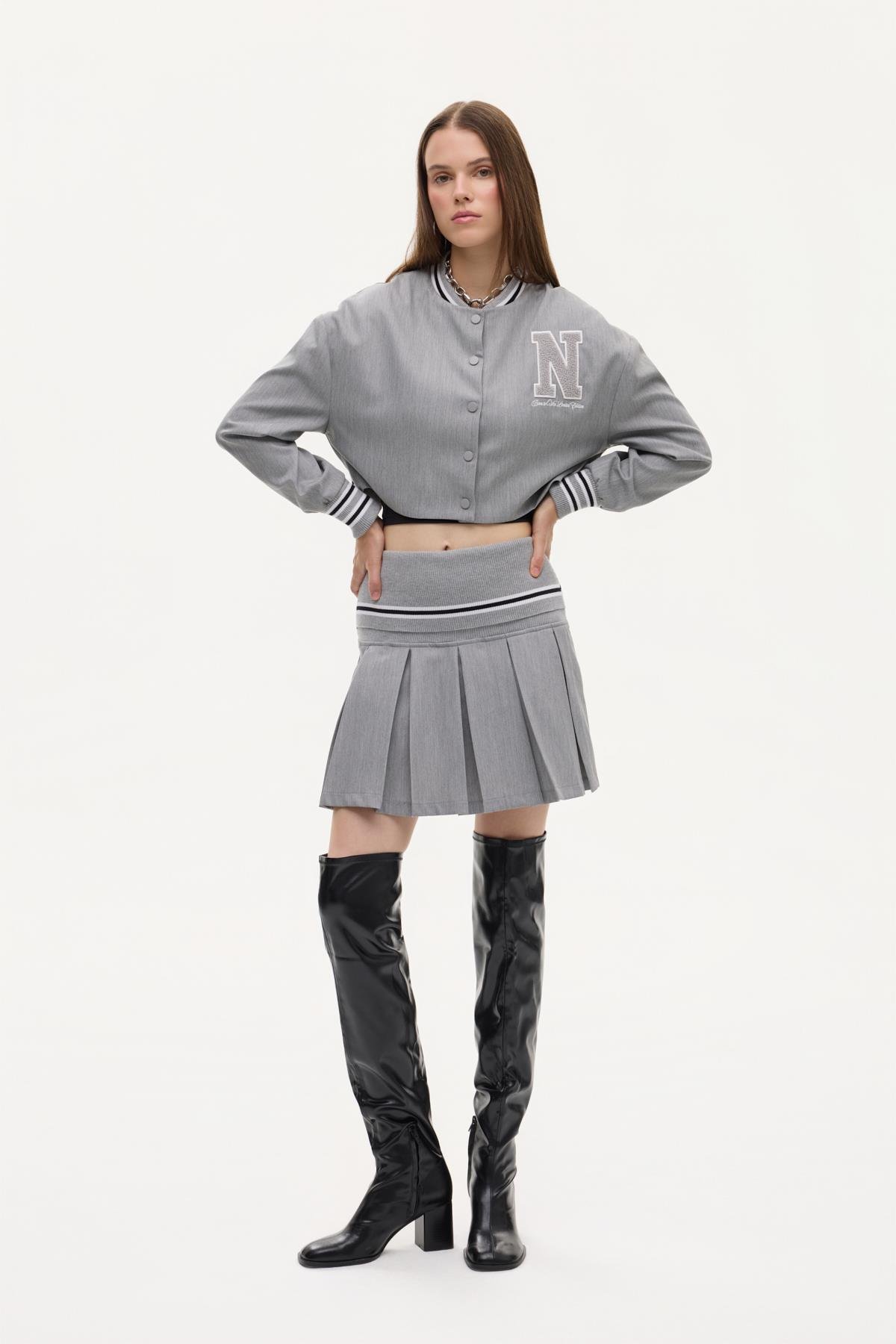 Quzu Ribbed Waist Pleated Skirt Grey (26KETK00876-015)