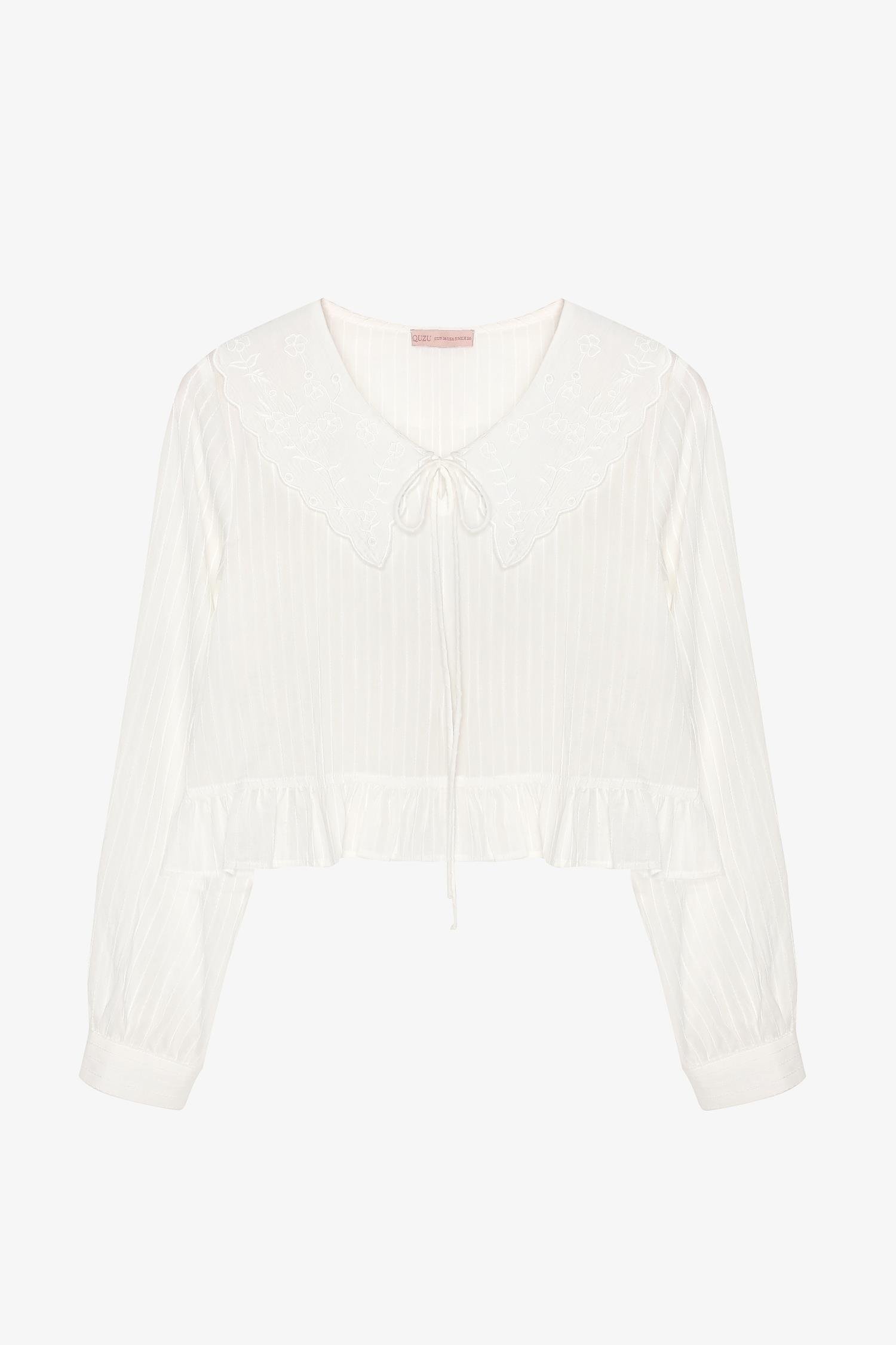 Quzu Yaka Detaylı Bluz Ekru (26KBLZ01095-002)