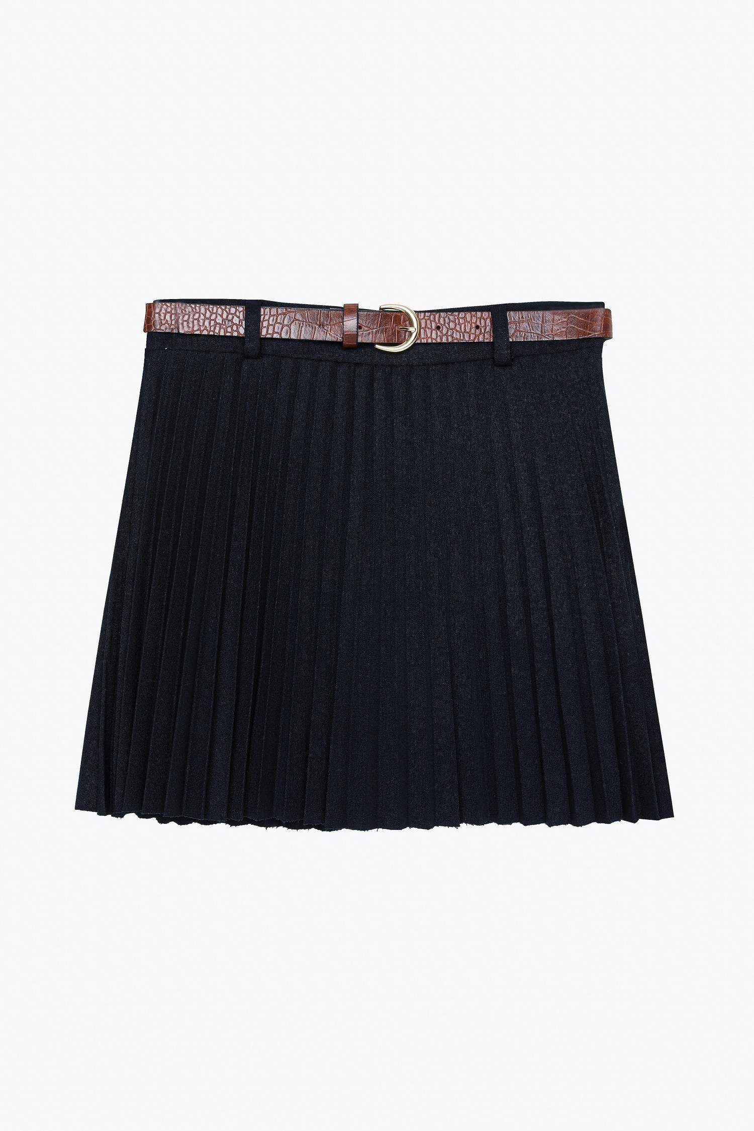 Quzu Kemer Detaylı Piliseli Etek Lacivert (26KETK01118-003)