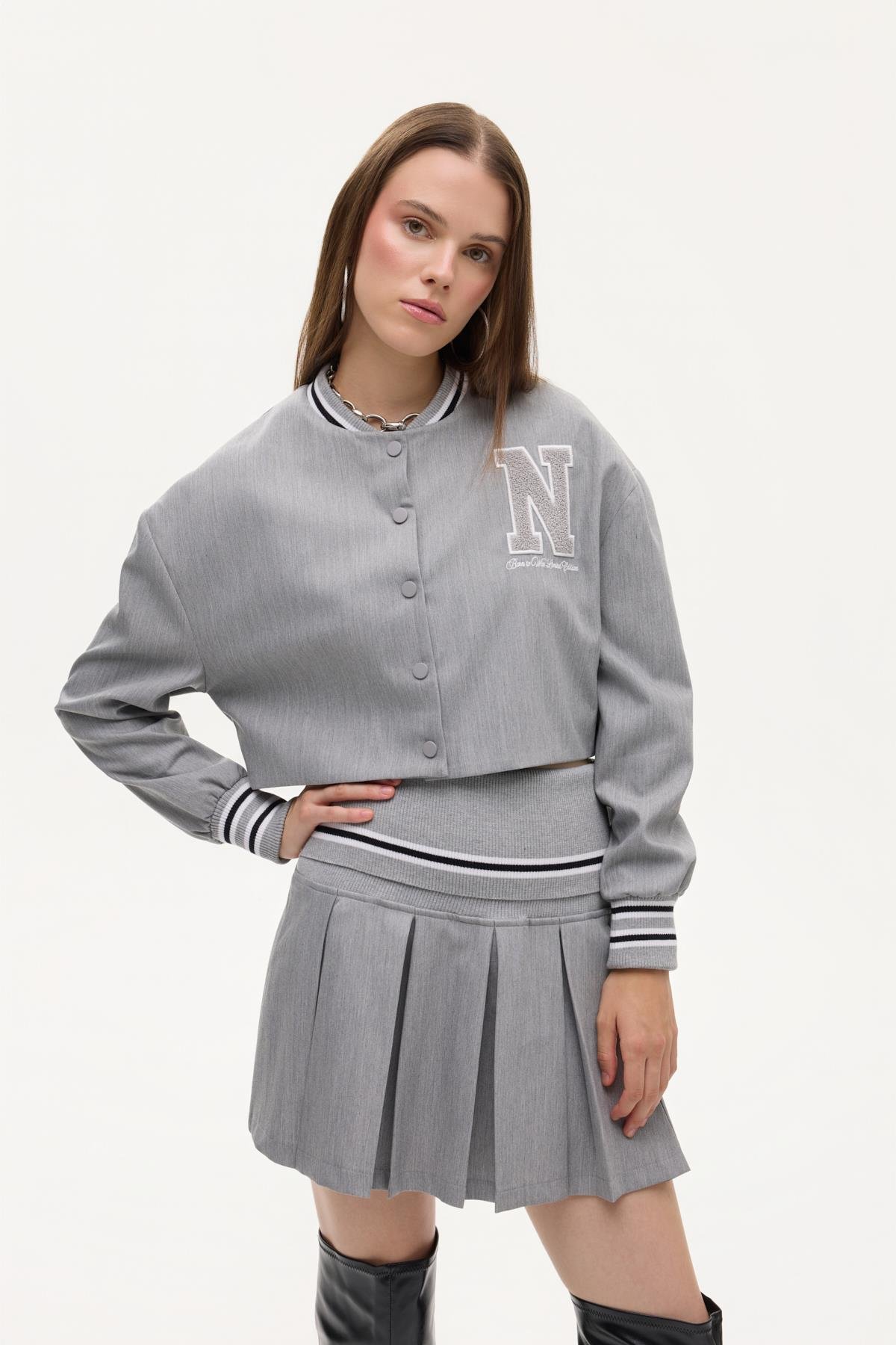 Quzu Nakış Detaylı Bomber Ceket Gri (26KCKT00886-015)