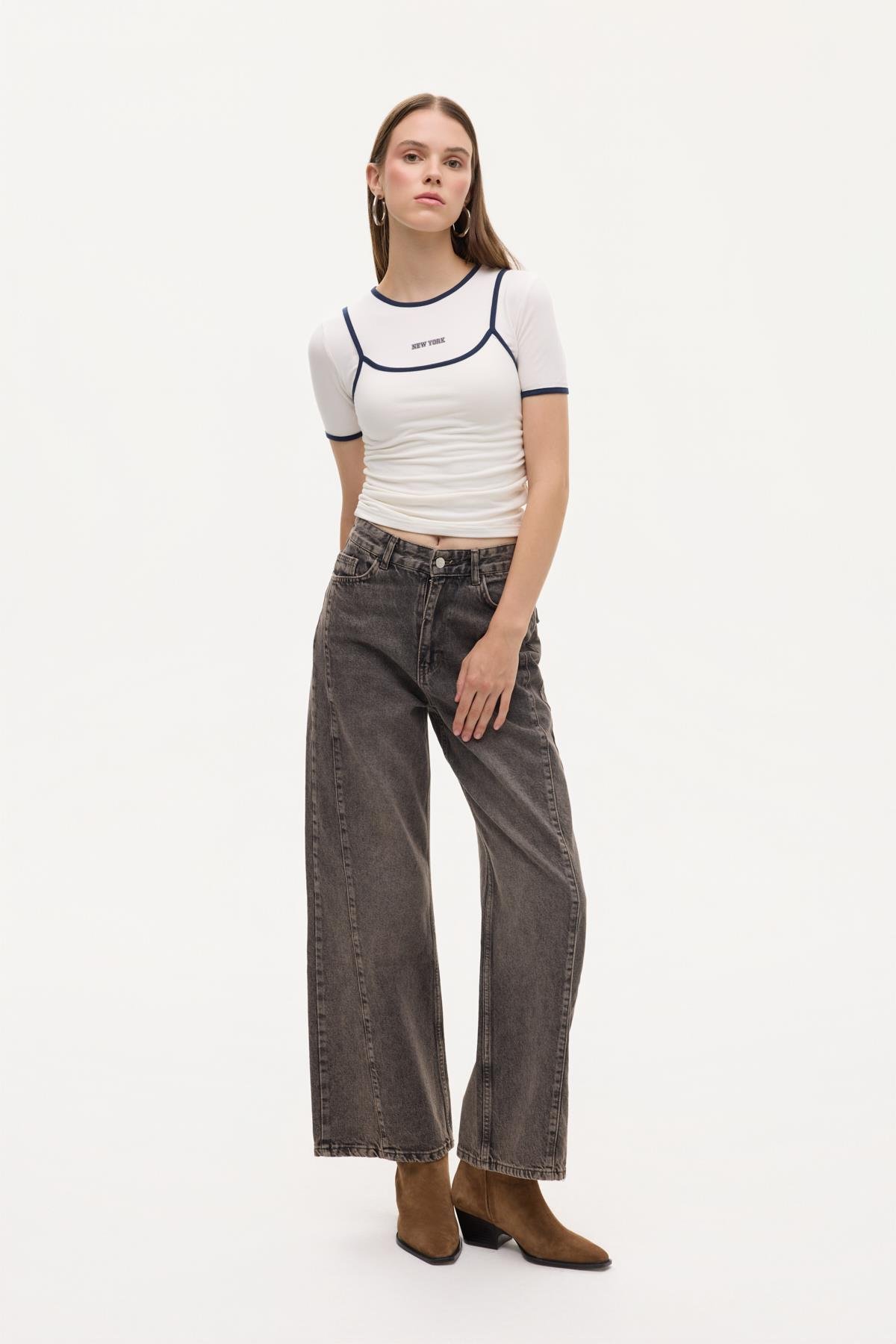 Quzu Tintli Parçalı Pantolon Kahve