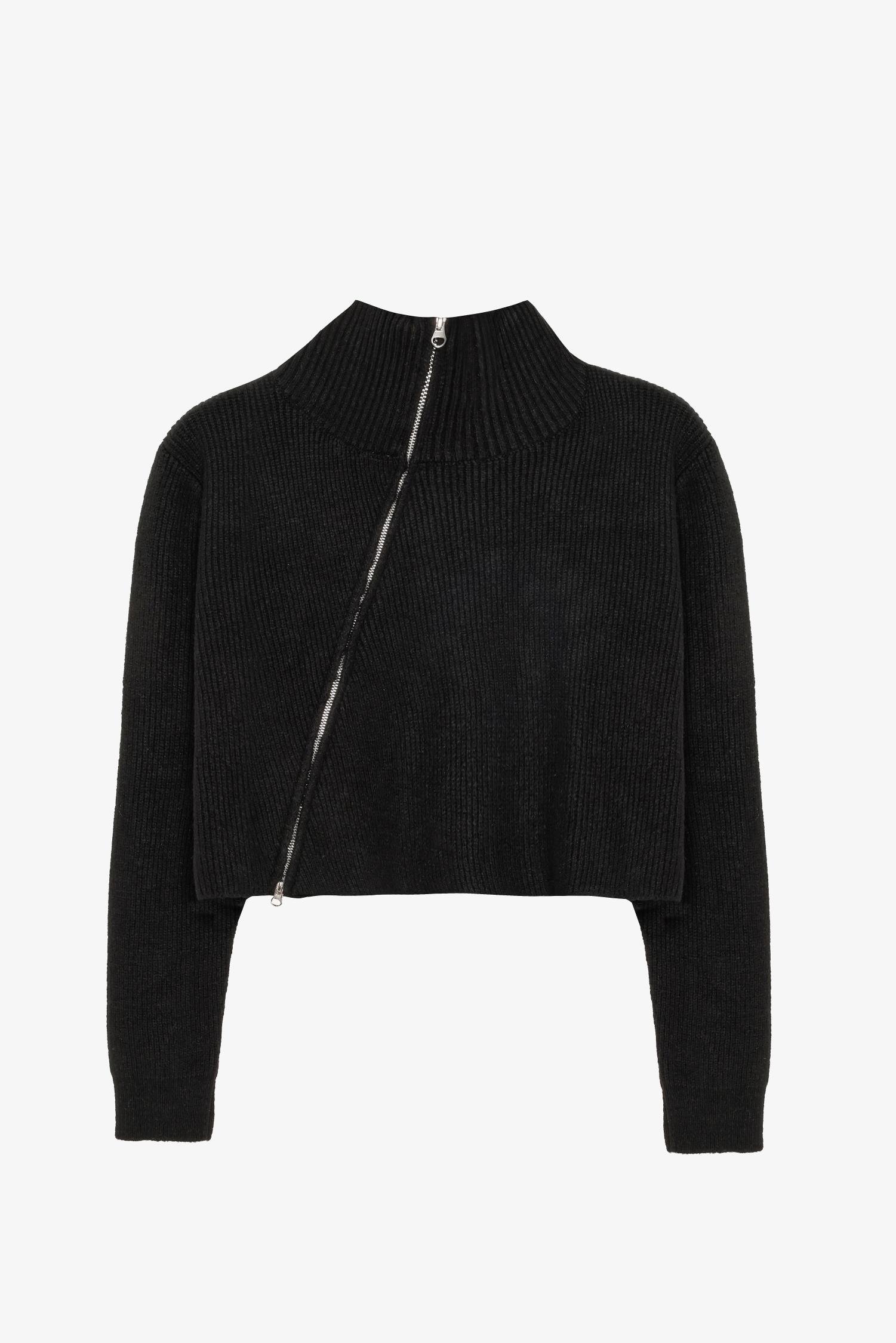 Quzu Yandan Fermuarlı Triko Siyah (26KTRK01176-001)