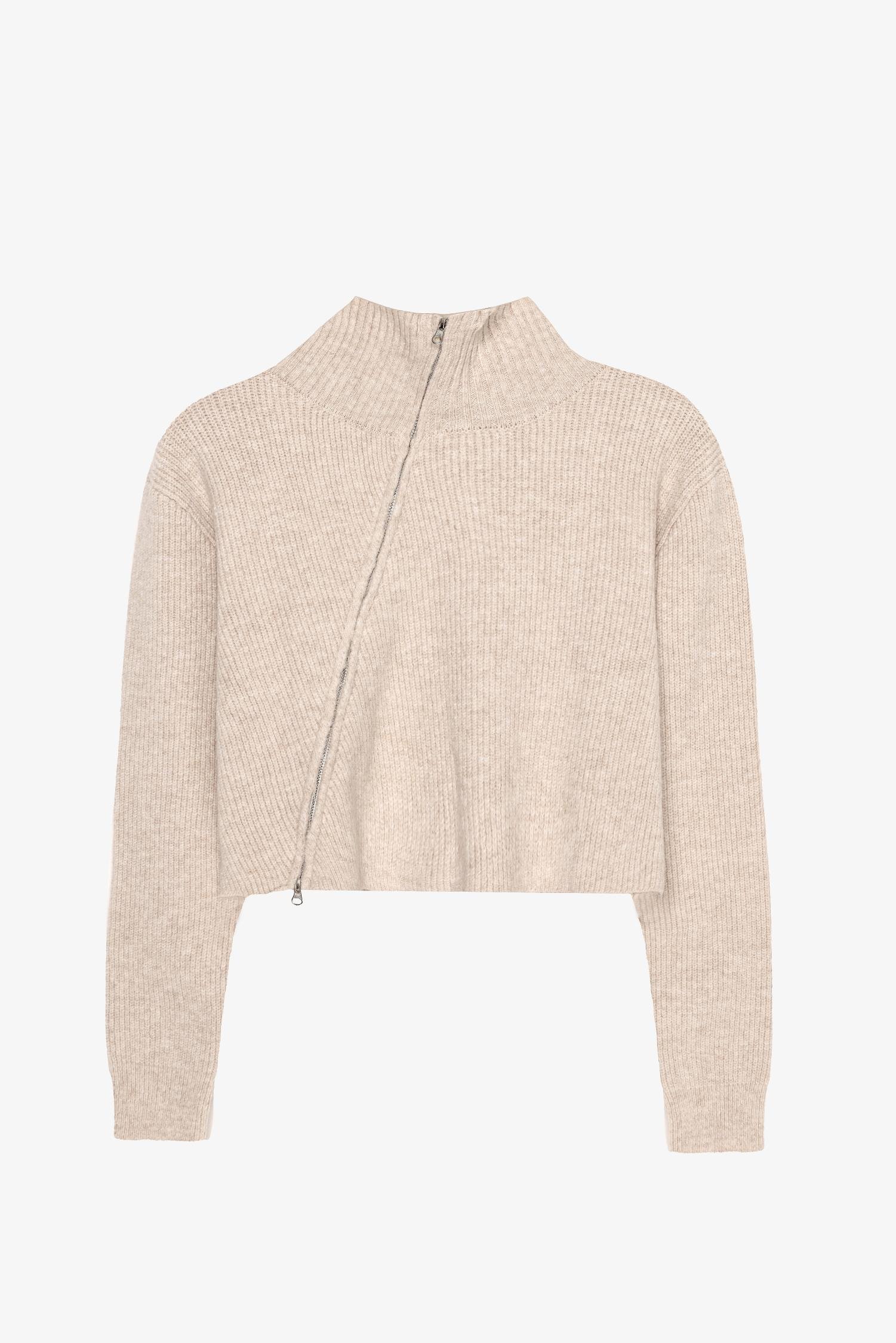 Quzu Yandan Fermuarlı Triko Taş (26KTRK01176-063)